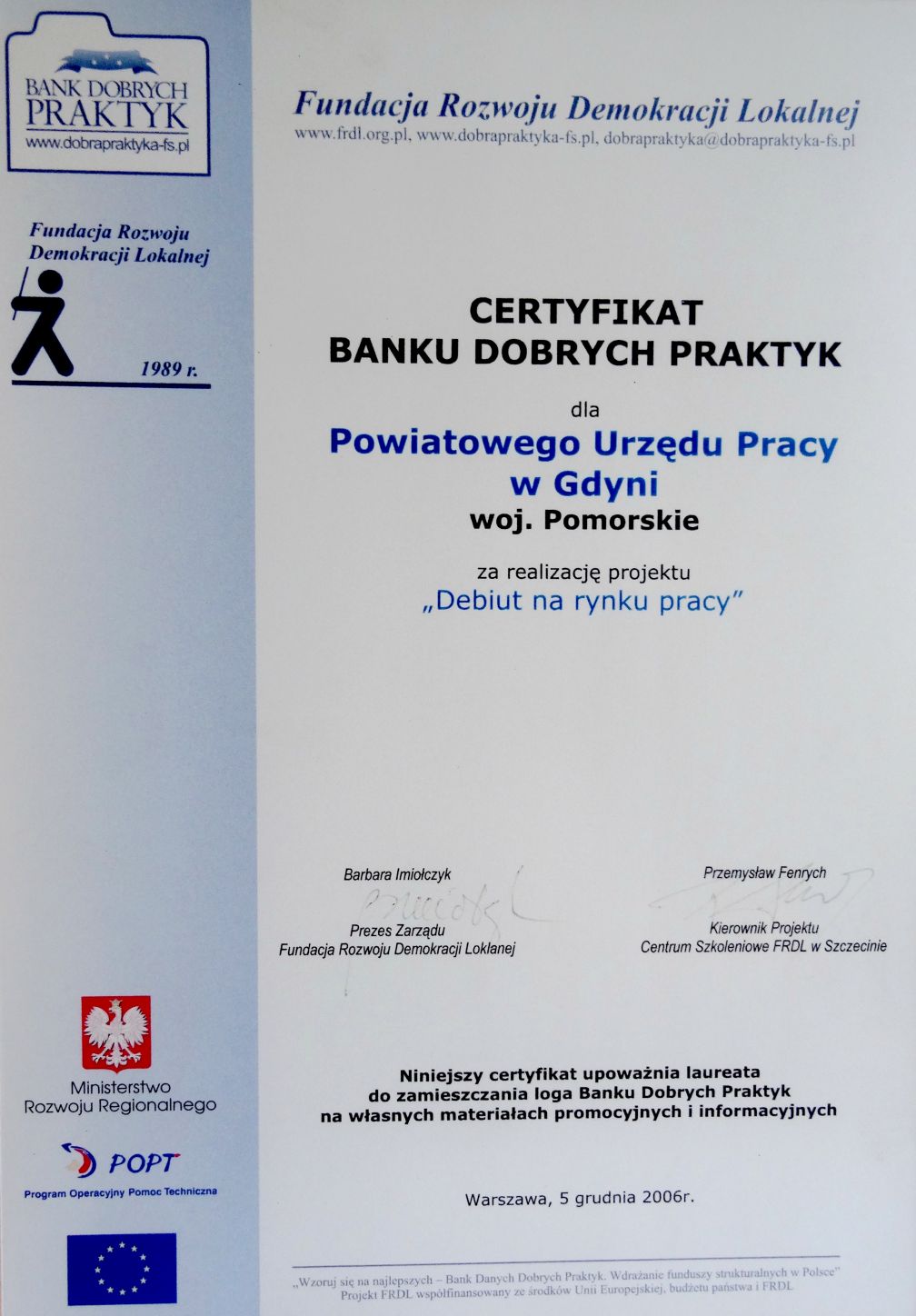 Certyfikat Banku Dobrych Praktyk Certyfikat Banku Dobrych Praktyk