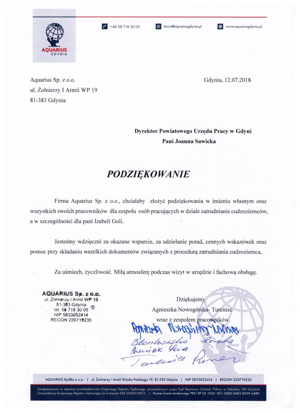 Podziękowania i opinie - Powiatowy Urząd Pracy w Gdyni