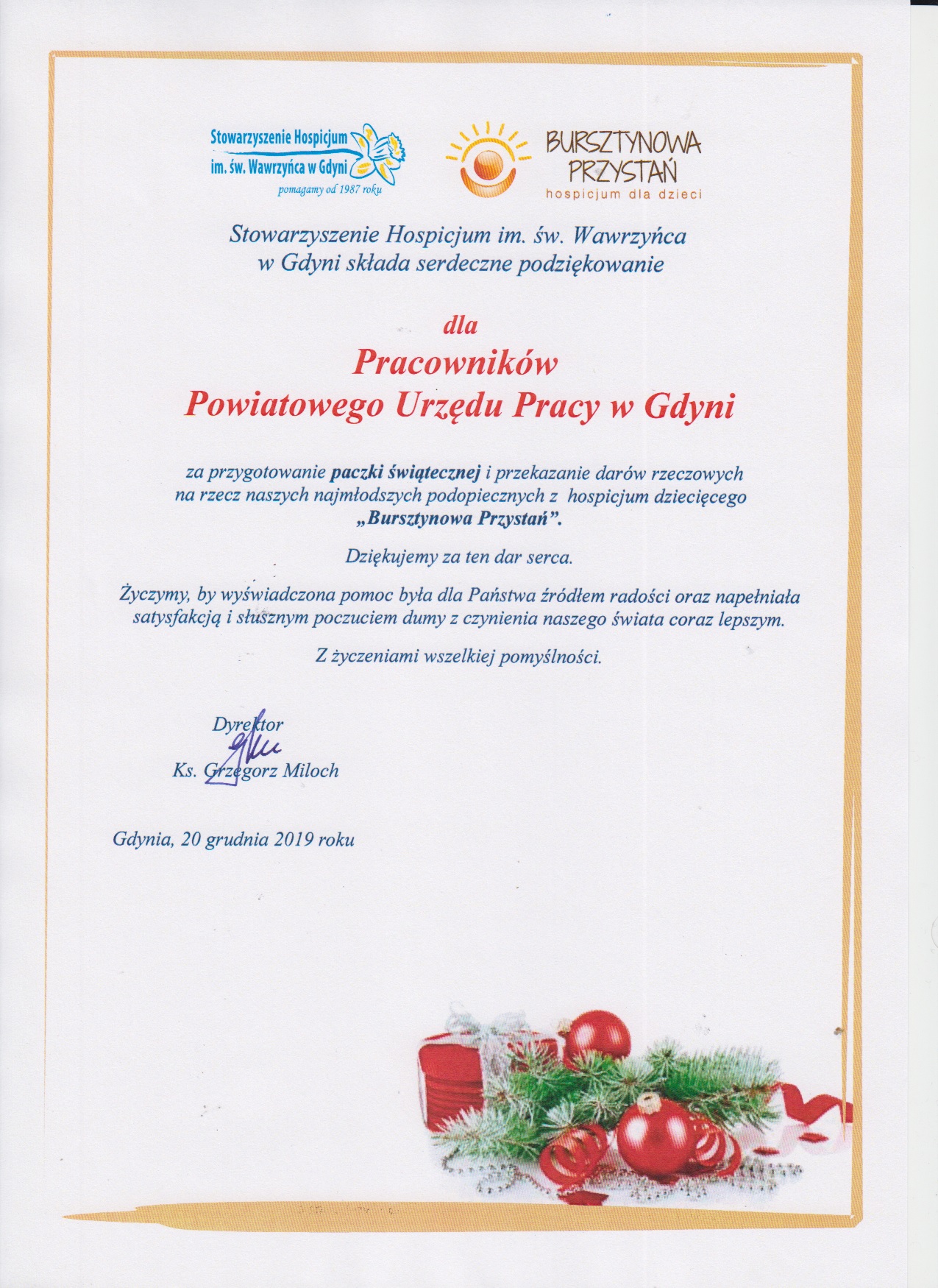 Stowarzyszenie Hospicjum im. św. Wawrzyńca w Gdyni oraz Fundacja Dobrych Zwierząt otrzymały podziękowania za współpracę w ramach działań na rzecz społeczności lokalnej. Współpraca z Zakładem Ubezpieczeń Społecznych również została doceniona.