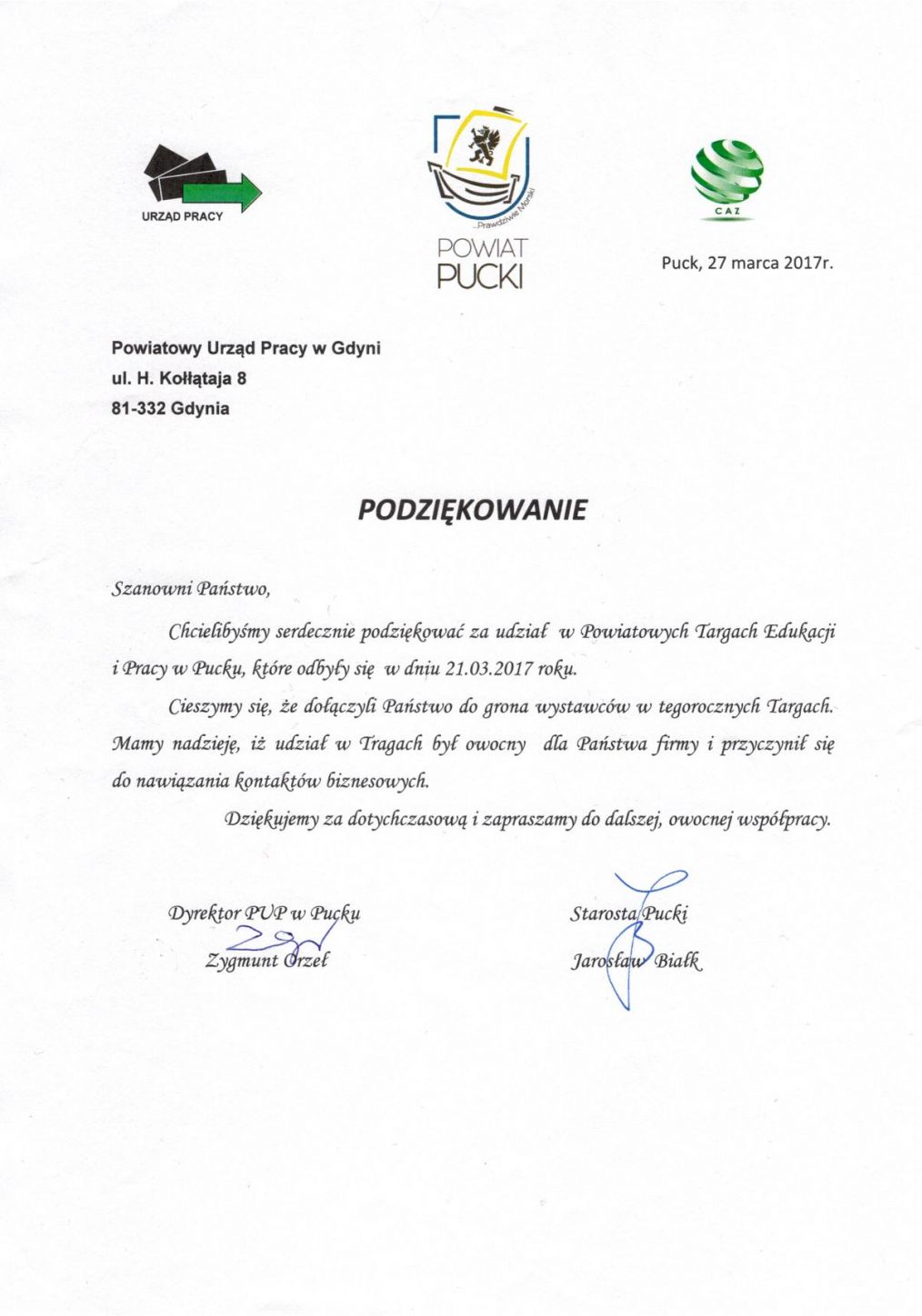 za udział w Powiatowych Targach Edukacji i Pracy w Pucku